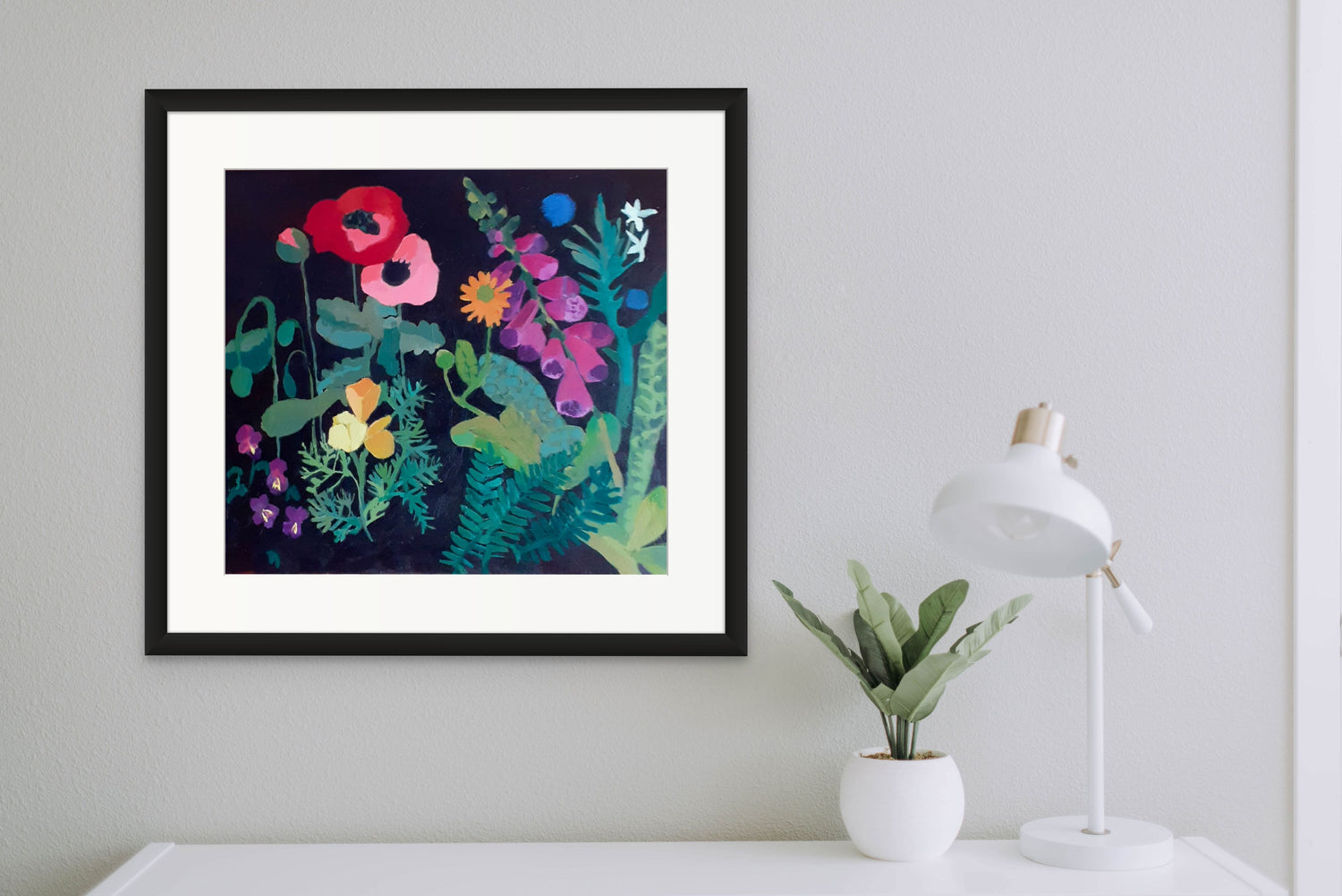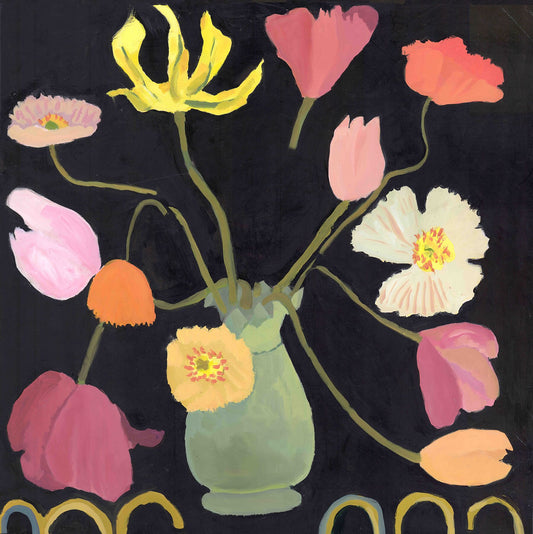 " We are so pleased with our purchases from Georgie . Vibrant flowers contrasting against a dark background , gently framed by pretty foliage , for us creates the illusion of a window into a magical night garden . They are an absolute delight. Thank you Georgie . "